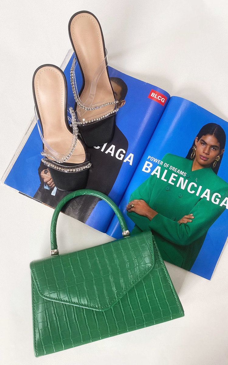 Complete your summer look with these stunning Kiara Embellished High heel sandals. With an open toe and slip-on design, they're perfect for dressing up or down whatever the occasion. The faux leather straps are adorned with beautiful embellishments, while the clear block heel gives you a touch of added glamour.
